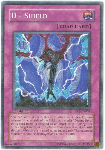 You can only activate this card when a Attack Position monster on your side of the field that includes "Destiny Hero" in its card name is selected as an attack target. Change that attack target monster to Defense Position and equip it with this card (this card is treated as an Equip Card). This equipped monster cannot be destroyed as a result of battle.
