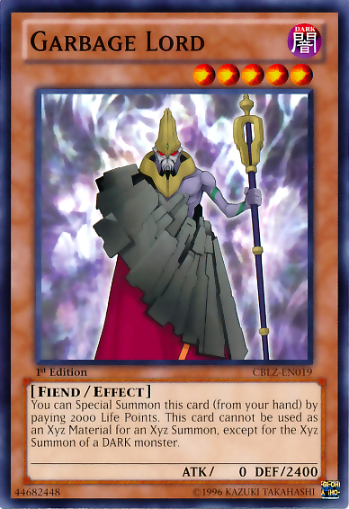 You can Special Summon this card (from your hand) by paying 2000 Life Points. This card cannot be used as an Xyz Material, except for the Xyz Summon of a DARK monster.