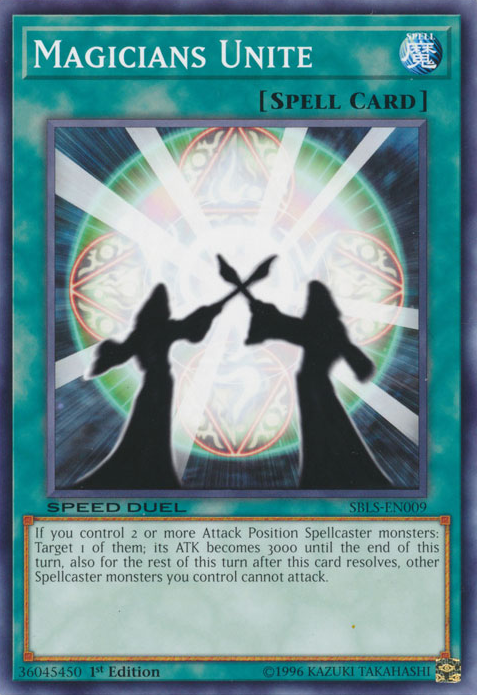 If you control 2 or more Attack Position Spellcaster monsters: Target 1 of them; its ATK becomes 3000 until the end of this turn, also for the rest of this turn after this card resolves, other Spellcaster monsters you control cannot attack.
