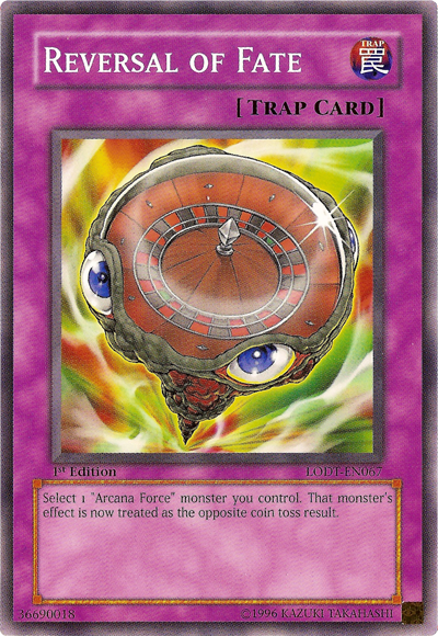 Select 1 "Arcana Force" monster you control. That monster's effect is now treated as the opposite coin toss result.