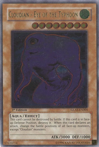 This card cannot be destroyed by battle. If this card is in face-up Defense Position, destroy it. When this card declares an attacks, change the battle positions of all face-up monsters, except "Cloudian" monsters.