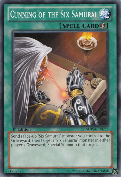Send 1 face-up "Six Samurai" monster you control to the Graveyard, then target 1 "Six Samurai" monster in either player's Graveyard; Special Summon that target.