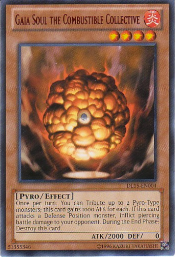 Once per turn: You can tribute up to 2 Pyro-Type Monster; this card gains 1000 ATK for each. If this card attacks a defense position monster. inflict piercing battle damage to your opponent. During the End Phase, destroy this card.