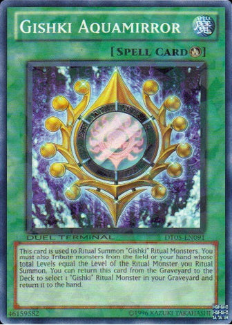 This card can be used to Ritual Summon "Gishki" Ritual Monster. You must also Tribute monsters from the field or your hand whose total Levels equals the Level of the Ritual Monster you Ritual Summon. You can return this card from the Graveyard to the Deck to select 1 "Gishki" Ritual Monster in your Graveyard and return it to the hand.