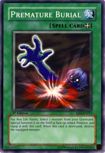 Pay 800 Life Points. Select 1 monster from your Graveyard, Special Summon it on the field in face-up Attack Position, and equip it with this card. When this card is destroyed, destroy the equipped monster.