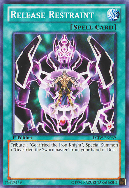 Tribute 1 "Gearfried the Iron Knight" Special Summon 1 "Gearfried the Swordmaster" from your hand or Deck.